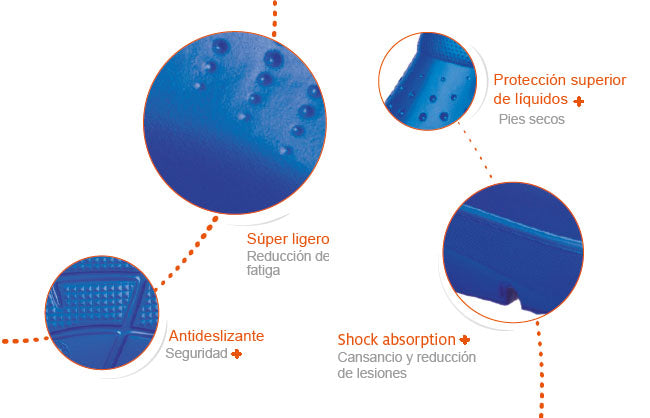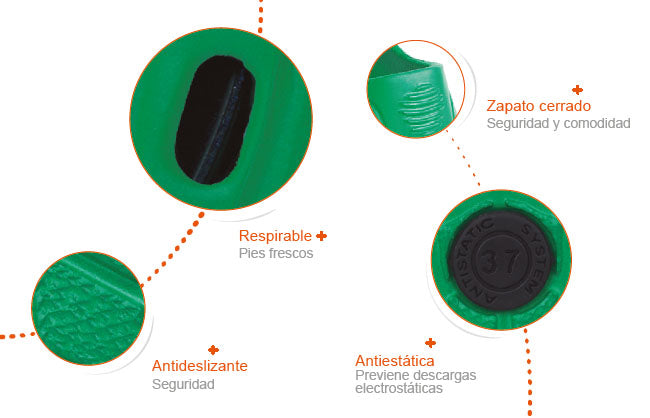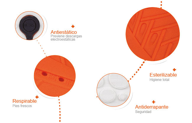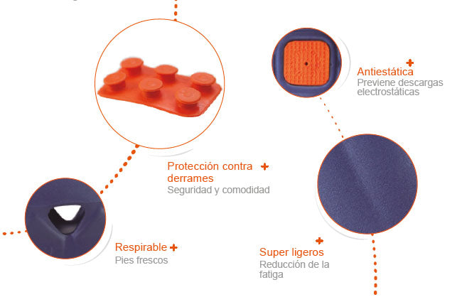 Al mismo tiempo, la estructura permite un zueco más ligero que reduce la fatiga y estimula una postura perfecta que termina con la construcción de zuecos sencillos y prácticos. La tecnología del talón fue diseñada para absorber impactos y prevenir microlesiones, además de evitar la sensación de piernas cansadas.